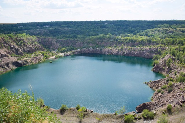 Радоновое озеро возле села Мигия, также известное как "Черное море", возникло на месте старого гранитного карьера на территории регионального ландшафтного парка "Гранитно-степное Побужье" рядом с порогами Южного Буга.