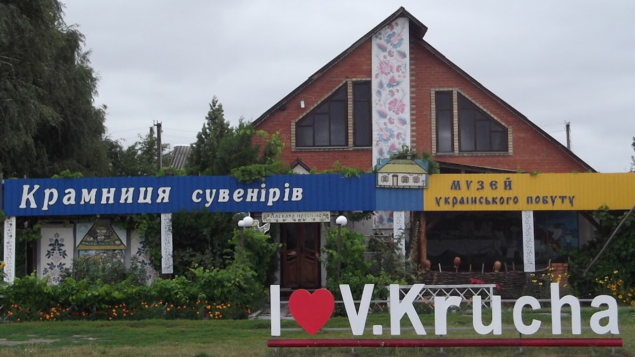 Приватний художній салон творчої родини Василенків "Музей українського побуту" у Великій Кручі знаходиться поруч із трасою Київ-Полтава, біля комплексу Пивоварні з рестораном.
