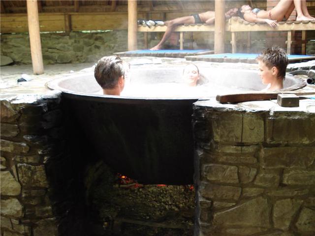 Сірководневими ваннами лікували хворих із порушеннями в опорно-руховому апараті. Один із старовинних чавунних чанів зараз перебуває в Австрії, інший був знайдений місцевим жителем на березі річки Турички неподалік свого будинку. Нині його знову використовують за призначенням. Чан наповнюють холодною мінеральною водою з джерела, на дно кладуть річкове каміння, потім воду поступово нагрівають на відкритому вогні. Коли температура досягає 30 градусів, можна розпочинати прийом ванни, чергуючи занурення у гарячу воду з охолодженням у гірській річці. Старий австрійський чан об'ємом 250 літрів вміщує 2 особи. Сучасні чани роблять місткі ...