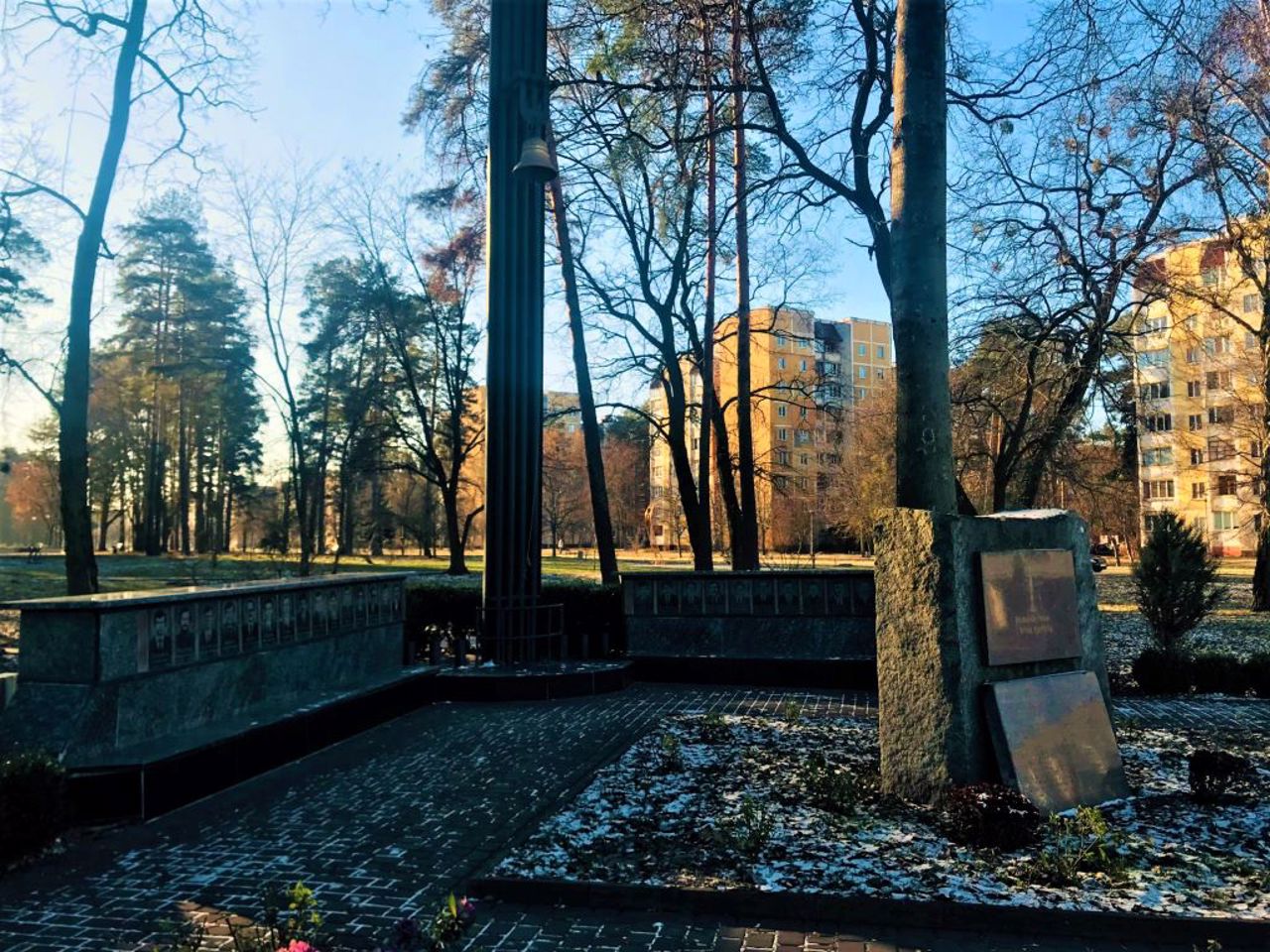 Архитекторы мемориала – Готальский, Белик, Аптукова. Композиция состоит из пилона, в котором установлен звон, и двух плит на которых разместили 30 фотографий работников ЧАЭС и пожарных, которые в первые часы ликвидации аварии набрали критическую дозу радиации.