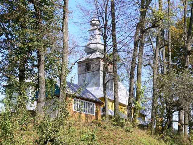 Относится к барочному типу деревянных церквей. Выглядит очень стройной и утонченной. К сожалению, впечатление несколько портит жестяное покрытие.