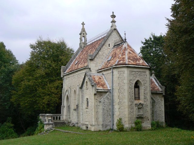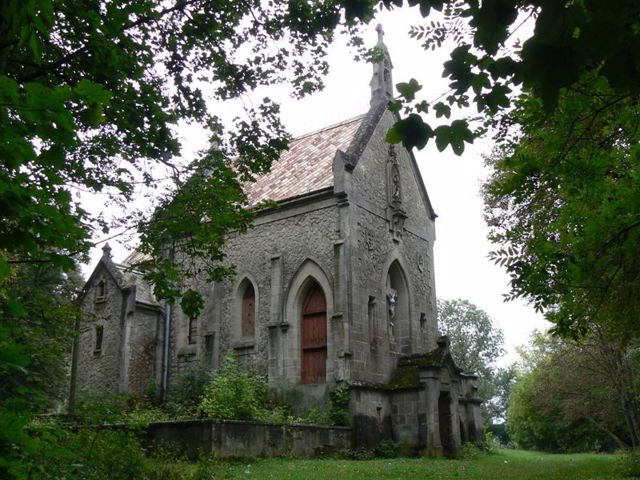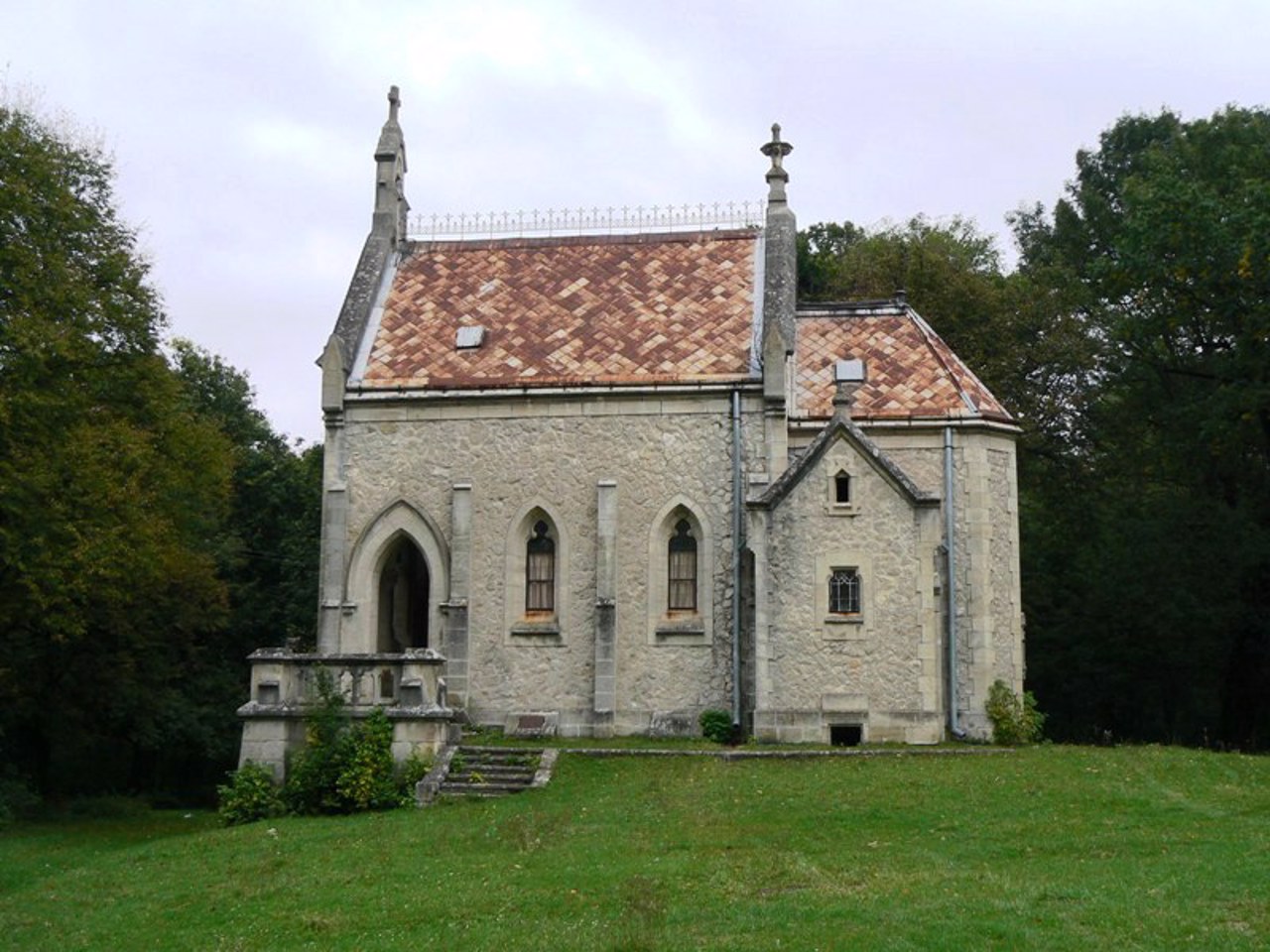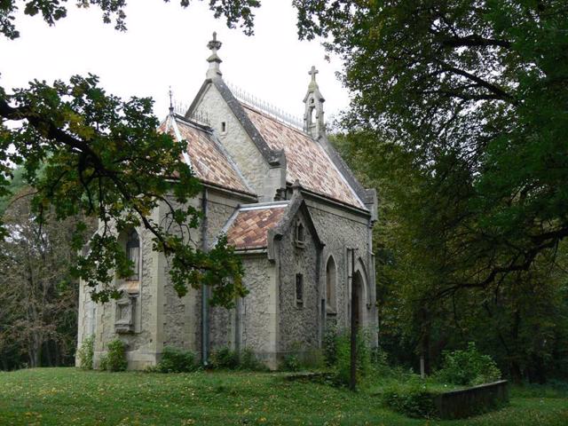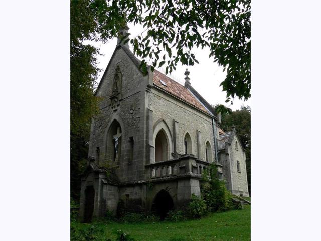 Невелика будівля збудована в стилі неоготики. На фасаді зображено литовський герб нащадків Гедиміна "Погоня" (вершник з мечем) та родовий герб Сапєг "Лис" (стріла з подвійною поперечиною).