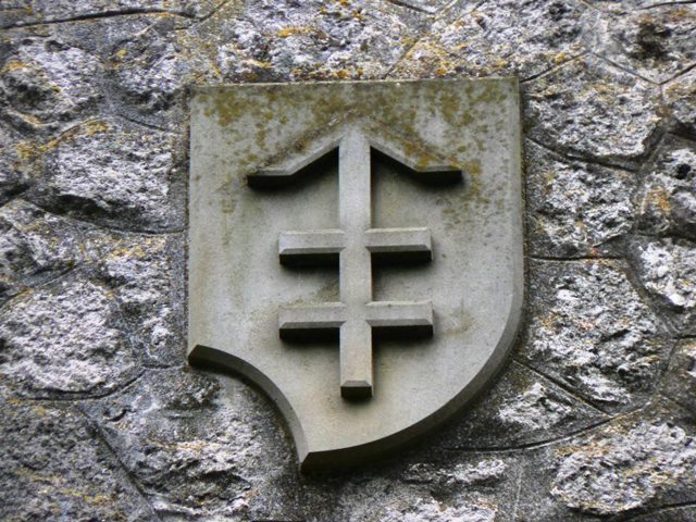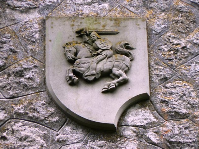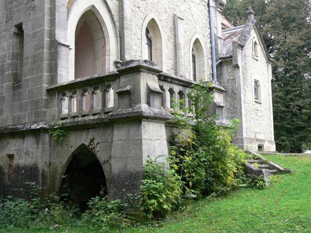 Небольшое здание построено в стиле неоготики. На фасаде изображен литовский герб потомков Гедимина "Погоня" (всадник с мечем) и родовой герб Сапег "Лис" (стрела с двойной перекладиной).