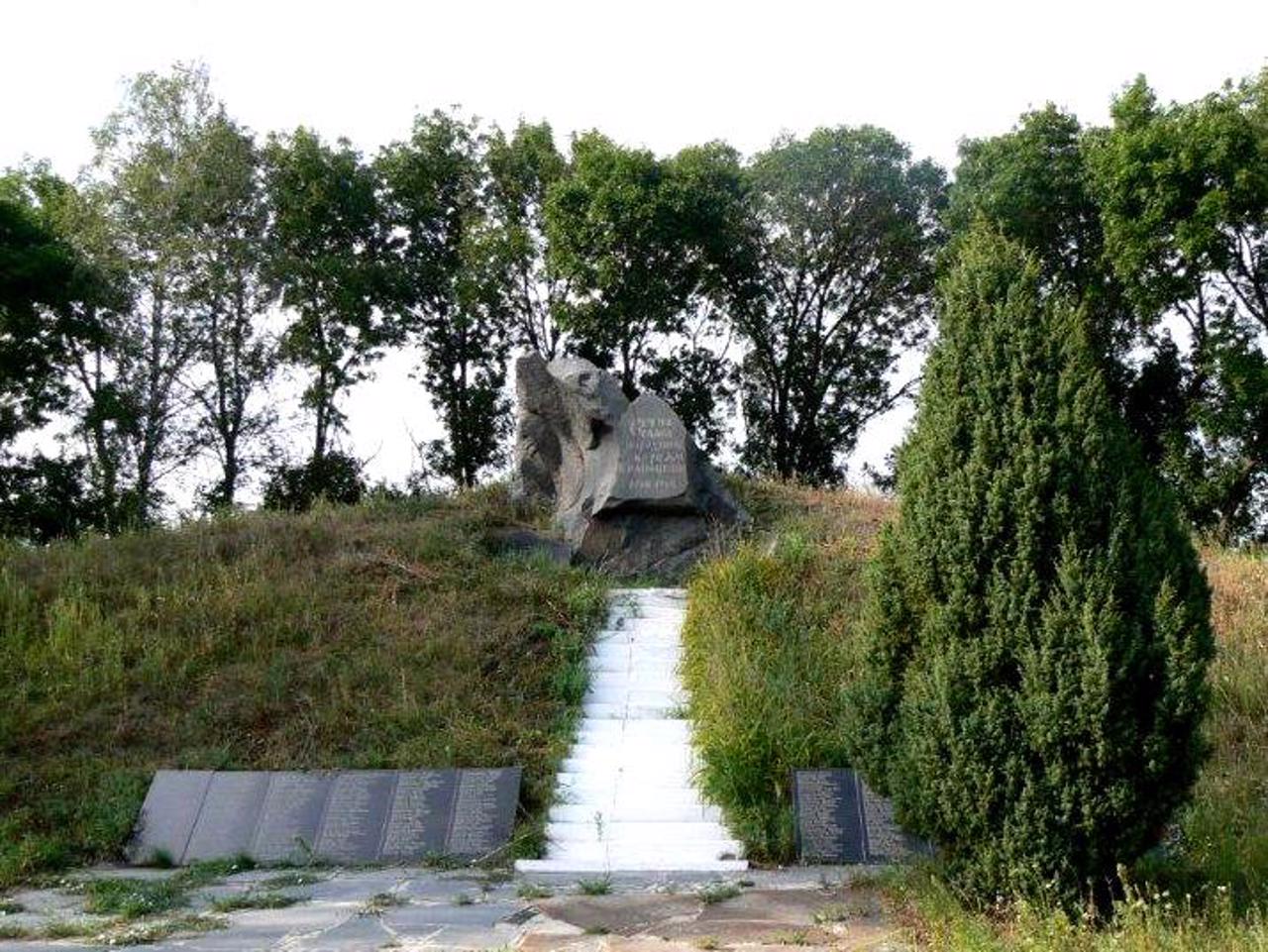 До 200-річчя трагедії на козацькому кургані-могилі, оточеному щільним кільцем дерев, встановлено монумент пам'яті учасників "Коліївщини".