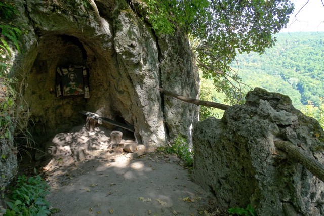 Небольшой грот вырублен в травертиновой скале над рекой Джурин. До Второй мировой войны (по другим данным, в конце XIX века) в пещере жил монах-отшельник, занимавшийся резьбой по камню. Частично сохранилась вырезанная отшельником статуя Святого Онуфрия.