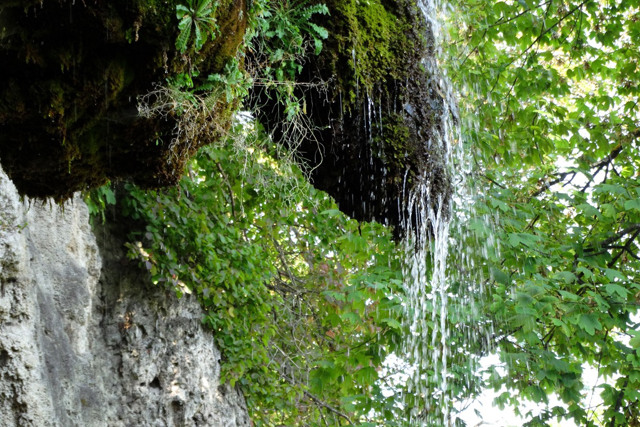 Над источником на подходе к "Пещере отшельника" установлены три статуи Богоматери. Воды источника стекают со скалы тонкими струями ...