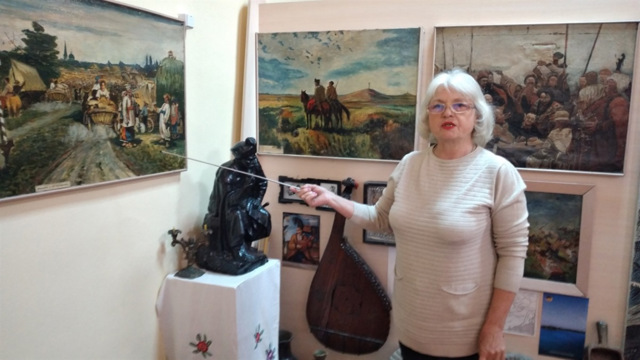 Перед входом в здание обустроена экспозиция "Каменные свидетели истории края", в которой представлены каменные идолы скифо-сарматского преиода.