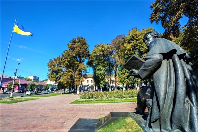 Монумент отличается "человечностью" - украинский гений изображен не суровым стариком с осуждающим взором, как обычно, а молодым и вдохновленным поэтом, присевшим отдохнуть с книжкой в руках.