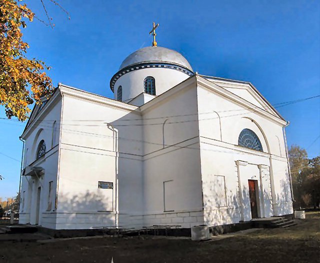 Храм у стилі пізнього класицизму хрестовий у плані, увінчаний напівсферичним куполом на циліндричному барабані. На західному, північному та південному фасадах великі напівкруглі вікна. Фасади завершено трикутними фронтонами.