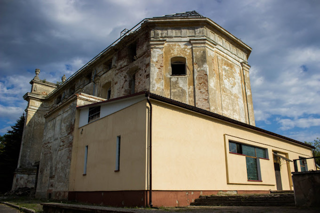 Новий мурований католицький храм за проєктом Доменіко Мерліні мав 7 вівтарів. Фасад його раніше прикрашав портик із колонами. На фризі зберігся рельєф "Алегорія віри".
