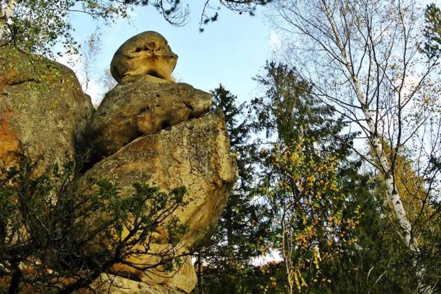 Скала "Терношорская Лада" в урочище Терношоры к северу от села Буковец, на окраине села Снидавка, более известна как "Голова Довбуша".