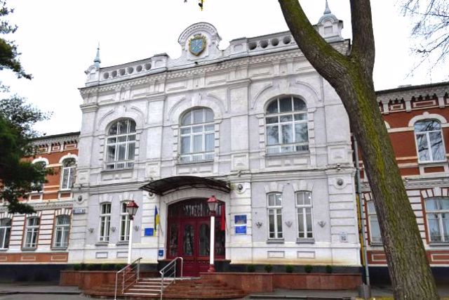 Хмельницкий городской совет размещается в здании, построенном в 1904 году как Александровское реальное училище, названное в честь царевича Александра.