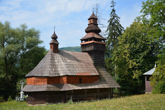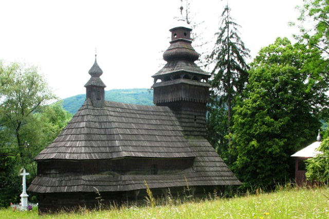 Храм сооружен в XVII веке в бойковском стиле. В 1794 году реконструирован в стиле барокко. Согласно надписи на перекладине, перестройку осуществил мастер Химич из села Лучки (теперь на территории Словакии).