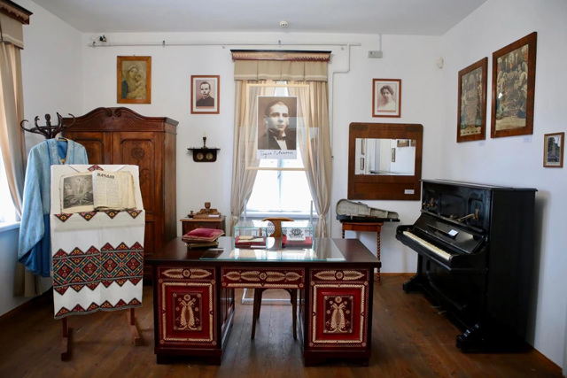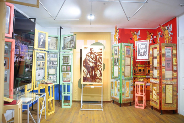 В пяти просторных комнатах разместилась экспозиция, созданная как филиал Львовского музея истории религии. В центре экспозиции – скульптура Богдана-Игоря Антонича, изображенного под куполом зеркала, символизирующего ночное небо, покрытое зв ...