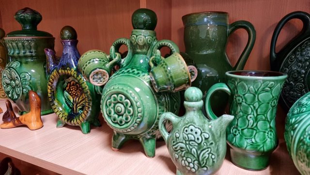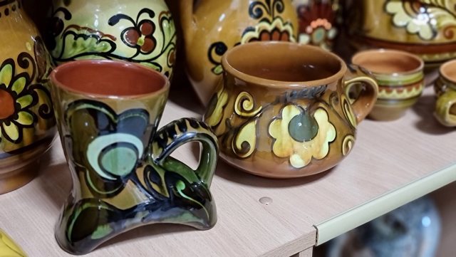 Багато зразків продукції представлено в експозиції музею: настінні тарілки, сервізи, куманці, вази, глечики, кухлі, підсв ...