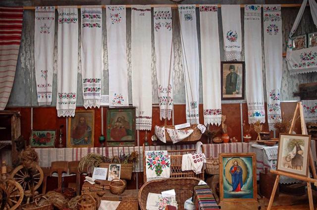Основу экспозиции составили древности из частных коллекций известных обуховских мастеров Галины Кучер, Николая Майко, краеведов Наталии Любиченко, Елены Артюшенко и других местных жителей. Представлены 40 видов вышитых сорочек, более 200 рушников, иконы, предметы быта и многое другое.