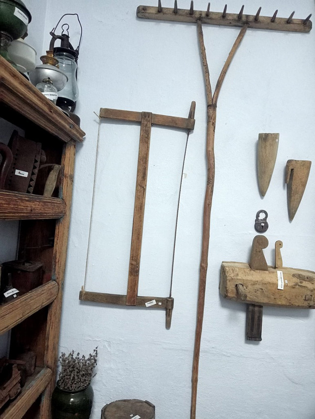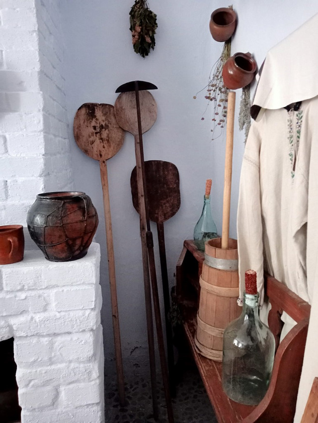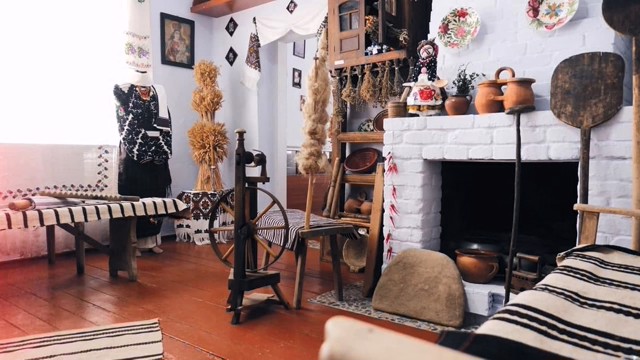 В экспозиции представлены стариные предметы быта жителей села, орудия труда, иконы, постолы, старинная рабочая женская и мужская одежда, мебель (кровать, бамбетель, замысник (креденец), сундук).