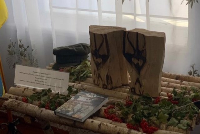 В комнате "История села в личностях" размещено много старых фотографий, экспонаты из пещеры "Вертеба". Необычным экспонатом является деревянная колода, внутри которой вырезаны трезубец и надпись "Слава Украине". Патриотическую надпись сделали украинские повстанцы на молодом дереве и она так вросла в ствол.