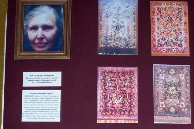 Представлены лучшие образцы решетиловских ковров, вышиванок, вышитых рушников работы местных мастеров. Среди уникальных экспонатов: ковры "Центаурии и птицы", "Павичи" (Леонид Толстуха), ковры "Древо жизни", "Осень", "Красная калина", рушники "Берегиня", "Древо жизни" (Надежда Бабенко), сорочки работы Елены Василенко и многое другое.