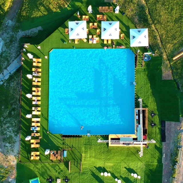 Влітку комплекс вміщує водні гірки довжиною 200 метрів, басейн 20*20 метрів з pool-баром та зоною для засмаги й відпочинку площею більше 400 квадратних метрів.