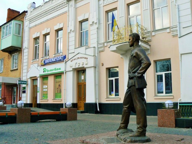На площі перед будівлею театру Бродського в 2008 році встановлено пам'ятник знаменитому українському актору театру та кіно Миколі Яковченку, уродженцю Прилук.