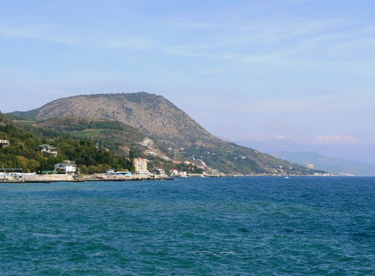 Гора Кастель заввишки 439 метрів розташована на південній околиці Алушти, за Професорським куточком.