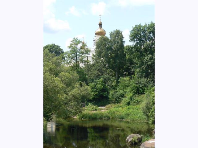 Кафедральний собор Різдва Христового, який також називають Свято-Ольгинською церквою, височіє над річкою Уж на околиці "Древлянського парку" у Коростені.