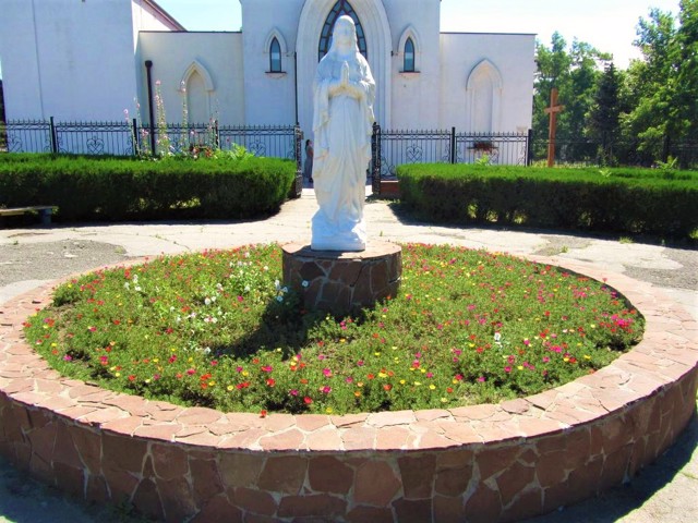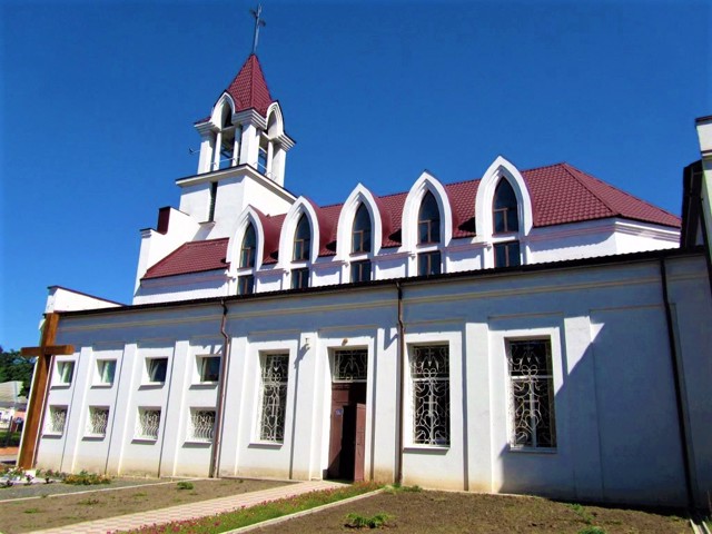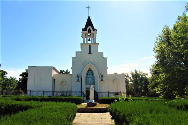 Перший католицький храм в ім'я Спасителя, збудований в 1787 році, був глинобитним. Кам'яний костел на цьому місці було зведено в 1820-х роках, пізніше над дзвіницею надбудували шпиль. Тут діяла римо-католицька церковна школа та суспільство допомоги бідним католикам.
