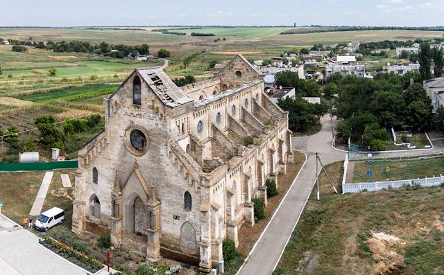 Перший католицький храм, споруджений у Степовому в 1820-1830 роках, був зроблений з вапняку і соломи. Новий Петропавлівський костел у неоготичному стилі був збудований із міцного черепашника.