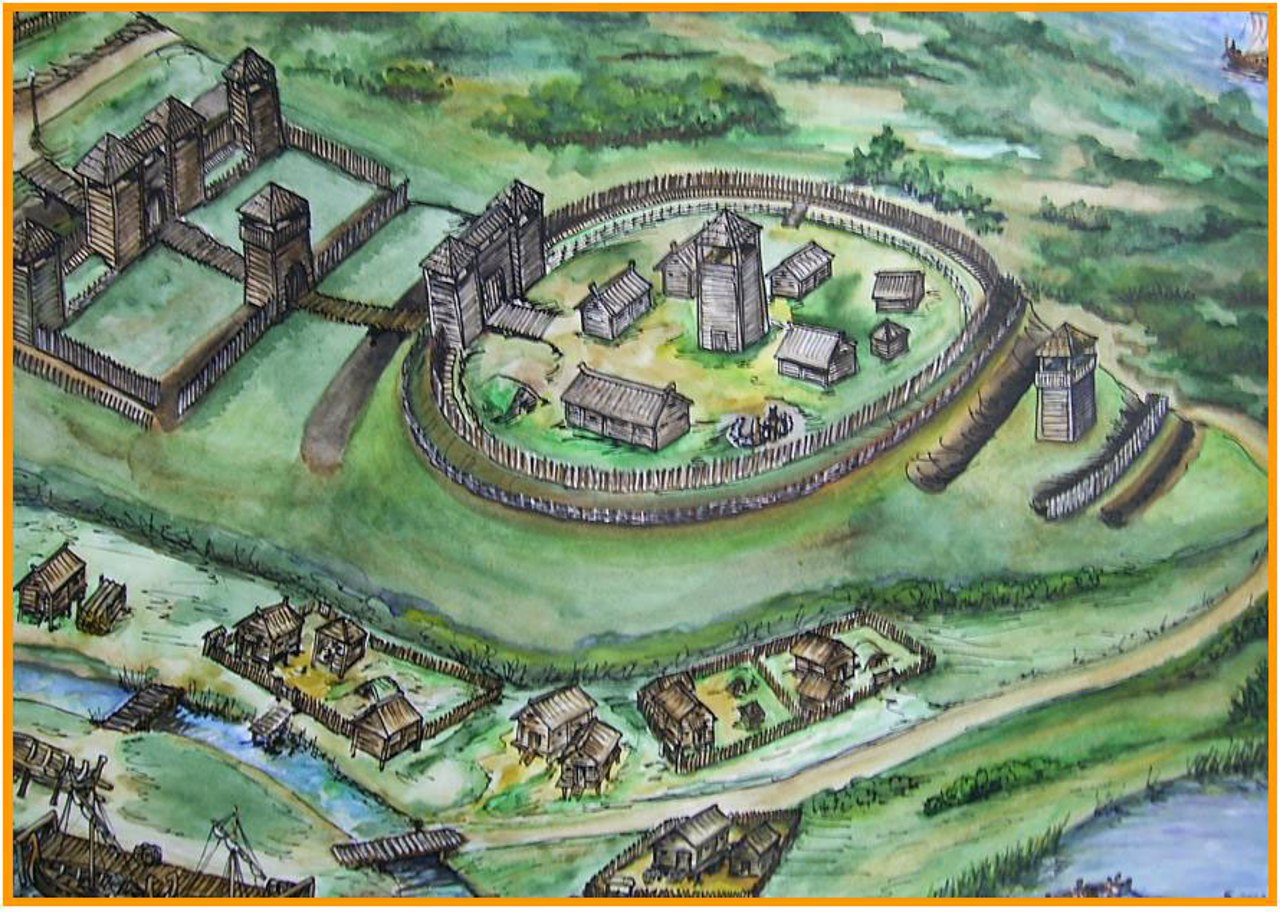 Історична назва цього зниклого міста не відома, оскільки воно не згадується у літописах. Імовірно, тут була фортеця, яка захищала південно-західні підступи до Чернігова. Украплення овальної форми розташовувалися на високому мисі, утвореному Десною та болотистою низовиною. Гарнізон фортеці складався з найманців-варягів (вікінгів), які або служили в дружині чернігівського князя, або контролювали Чернігів від імені київського князя. Ймовірно також, що це була самостійна варязька торгова к ...