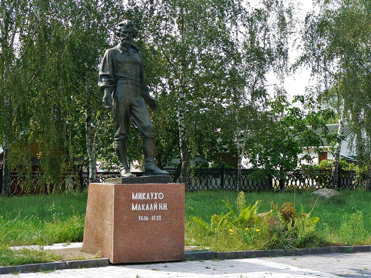 Монумент в центрі Малина було відкрито в 1986 році на честь святкування 140-річчя від дня народження Миклухо-Маклая. Автор пам'ятника – скульптор Петро Степаков.