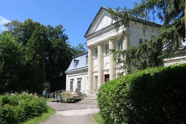 "Будинком з левами" називають у Пустомитах палац у стилі класицизму, розташований у парку – пам'ятці садово-паркового мистецтва ХІХ столітття.