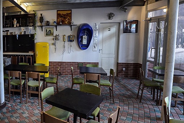 При музеї ретроавтомобілів працює кафе, оформлене у ретростилі.