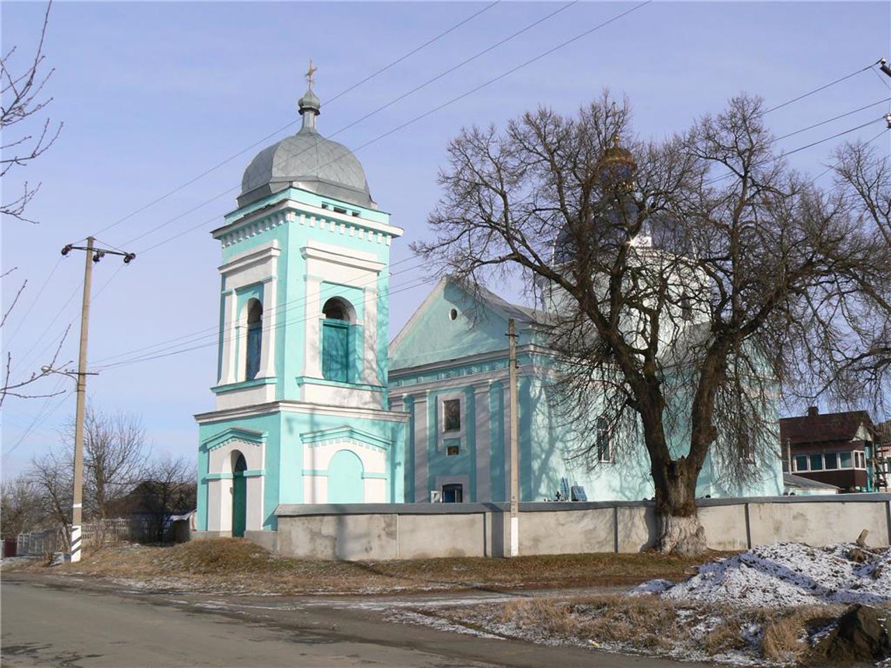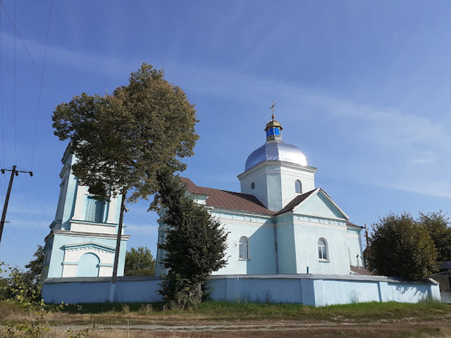 Хрестова в плані церква з дзвіницею, що розташована окремо, виконана в стилі класицизму.
