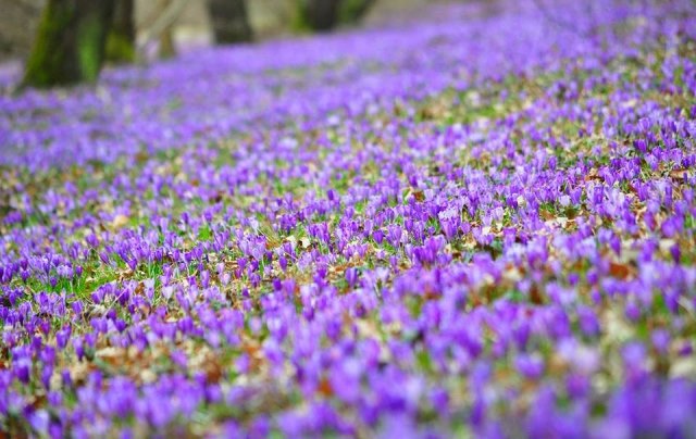 У березні на території дендропарку "Березинка" масово цвіте шафран Гейфеля (крокуси).