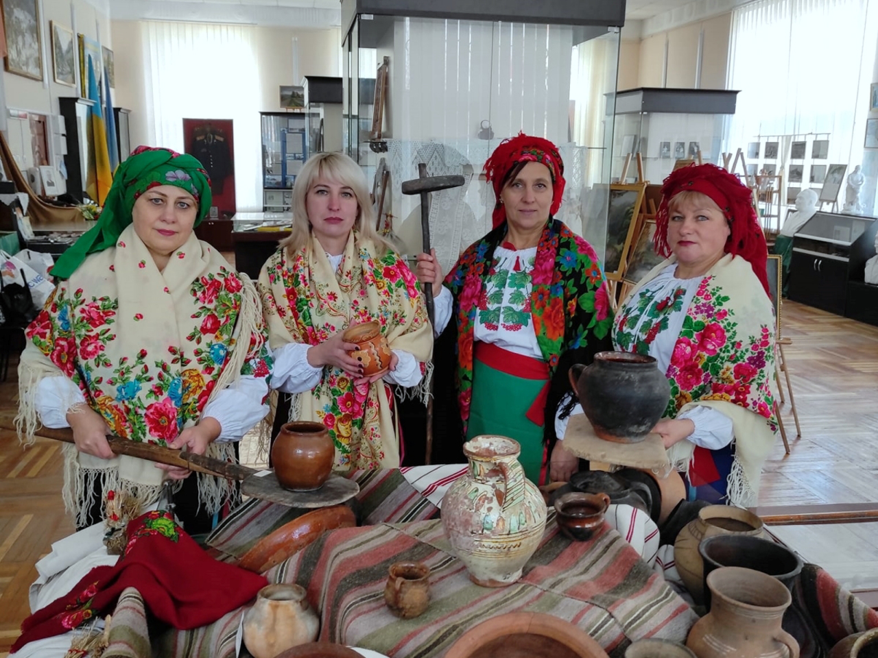 В етнографічній експозиції представлені предмети традиційні домашнього вжитку: глиняний посуд, фрагмент ткацького верстату, старовинний одяг.