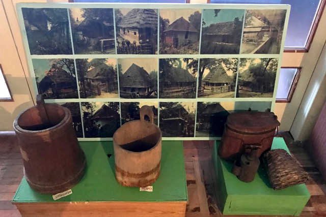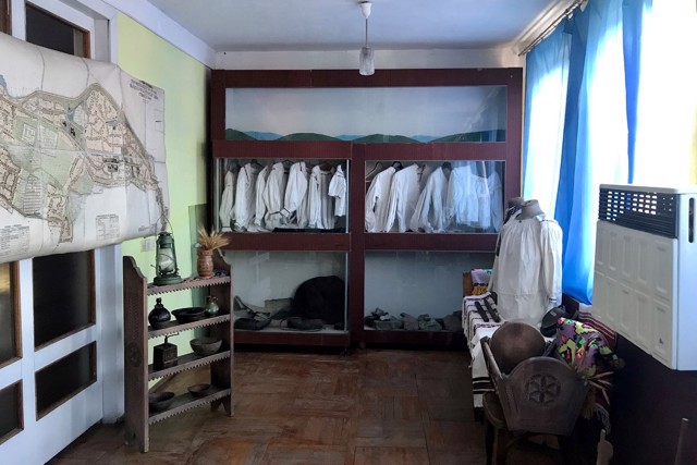 В етнографічній частині експонується старовинний одях, предмети побуту та знаряддя праці.