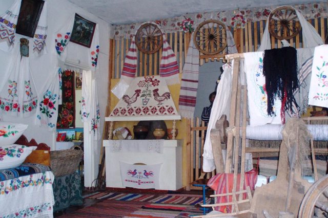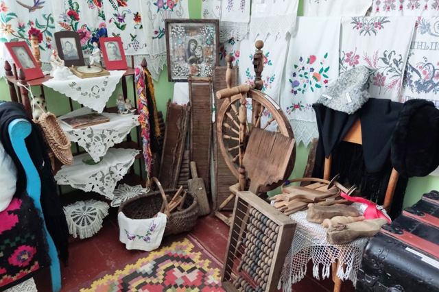 В етнографічному розділі відтворено інтер'єр традиційної української хати з пічкою, лавами, скринями, мисниками, іконами та вишитими рушниками. Тут представлені речі сільського побуту: ночви, бочка, мірка, хлібна діжа, решето, сито, рубель для прасування, коромисло, плетені вироби з кори й лози – кошики й корзини. Також можна побачити сільськогосподарське знаряддя: серп, ціп, зернотерку, ручний млин і ярмо для волів.