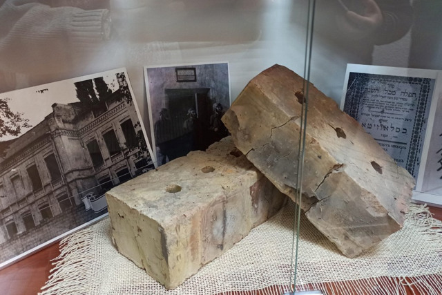 Серед унікальних артефактів є цеглини, з яких була зведена будівля попередньої синагоги Кам'янського. На її місці зараз розташовується благодійний центр "Бейт Барух" і велика синагога "Бейт Реувен". Такі ж цеглини бул ...